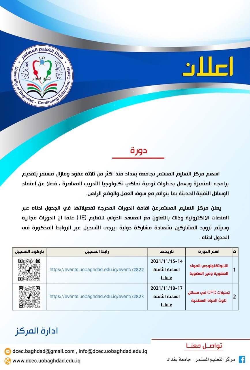 ودورة تحليلات CFD في مسائل تلوث المياه السطحية(CFD analysis for surface water pollution) للتسجيل الالكتروني :-